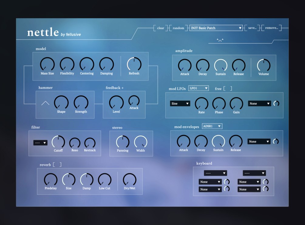 Nettle is asoftware instrument that explores the unique and relatively under-explored world of scanned synthesis. The timbre of the sounds you create constantly evolve, as the waveform produced is made by tracing (scanning!) the positions of masses that are always in motion. These masses are excited by you pressing a key on your MIDI controller - this simulates the action of a hammer striking the connection of masses. Through the user's manipulation of the masses, the springs that connect them, and the hammer that excites them, a wide range of dynamic, and almost sentient, sounds are possible.